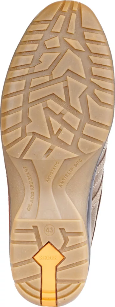 * antisztatikus biztonsági könnyű lábbeli, egész napos viseletre víztaszító, lélegző nappa bőr felsőrésszel * rendkívül hajlékony olaj- és saválló, emelt SRC csúszásbiztosságú, kétrétegű PU talp energiaelnyelő sarokkal * kompozit lábujjvédő (CK), flexibilis, átszúrás elleni fémmentes talplemez * kiváló szellőzőképességű, páraáteresztő bélés , kényelmes, szivacsos szártető színbőr belsővel, békanyelvvel , anatómiailag kialakított, nedvszívó, antisztatikus Coolmax talpbetét
