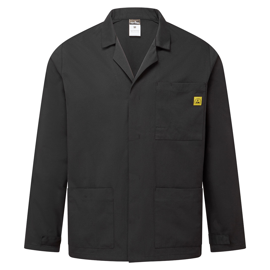 This inherently anti-static jacket is ideal for environments where electrostatic resistance is required. Designed with safety and comfort in mind. Features include concealed stud front, two lower patch pockets, one chest pockets and adjustable cuffs.