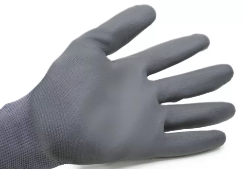 EUROLITE P500 kesztyű, * Varrás nélküli, szürke, 13-as kötésű, finom poliamid védőkesztyű* Tenyerén szürke poliuretán mártás dmf szint < 30ppm; kötött csukló; tapintási index; vdma teszt eredményei: - oldószer alapú festék: a kesztyűk megfelelnek minden osztálynak (a1, a2 és a3) -> vdma24364-a1/a2/a3-l - vízbázisú festék: a kesztyűk minden osztálynak (a1, a2) megfelelnek és a3) --> vdma24364-a1/a2-w