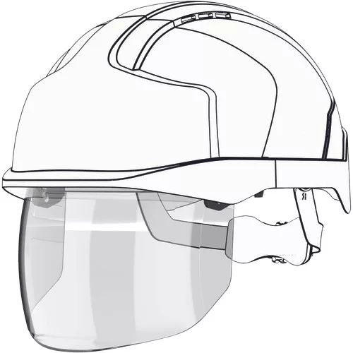 » csere látómező az EVO®VISTAshield® sisakhoz » EN 166 1 AT KN (1. optikai osztály, karcálló bevonat, párásodásgátló réteg, nagy energiájú szemcsék elleni védelem) »