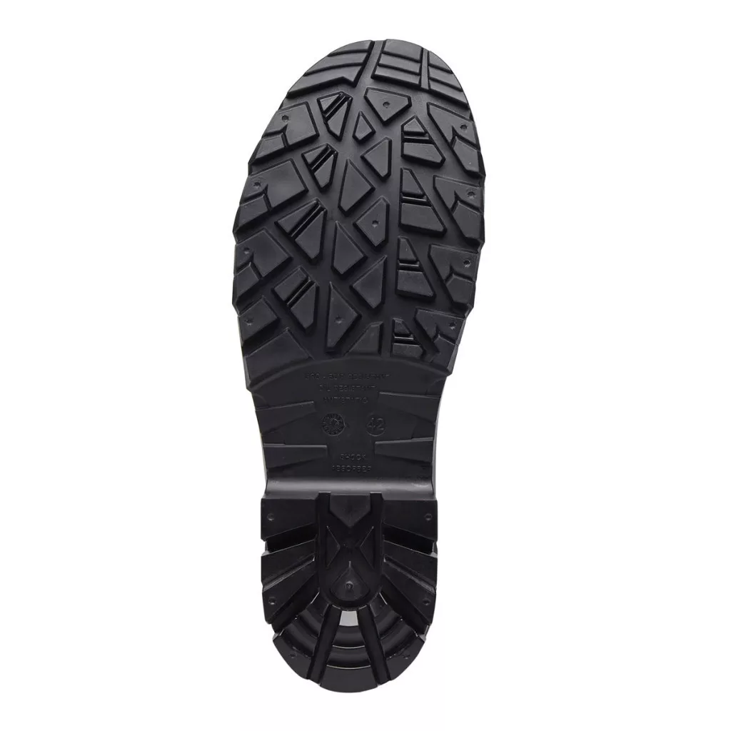 Jellemzője a Anyag 8% nitril gumit tartalmazó PVC szerkezet, amely ellenáll a vegyszereknek és a nedves környezetnek, a Acél orrmerevítő 200 joule ütésállóságú védelem a leeső tárgyak ellen, valamint a Rozsdamentes acél talplemez átszúrás elleni védelem az éles tárgyakkal szemben.