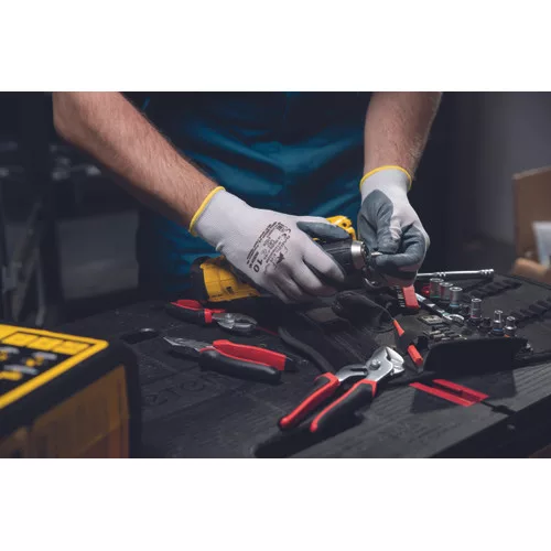 • kötött PES kesztyű nitril mártott tenyérrel, rugalmas mandzsettával