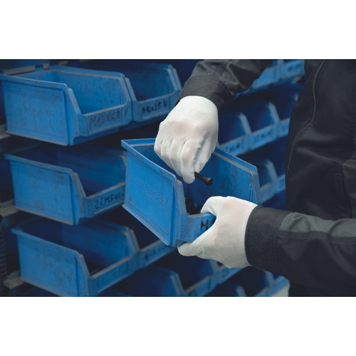 • kötött PES kesztyű PU mártott tenyérrel, rugalmas mandzsettával