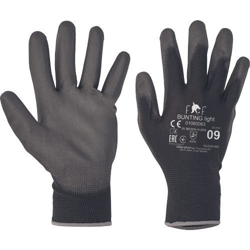 • kötött PES kesztyű PU mártott tenyérrel, rugalmas mandzsettával