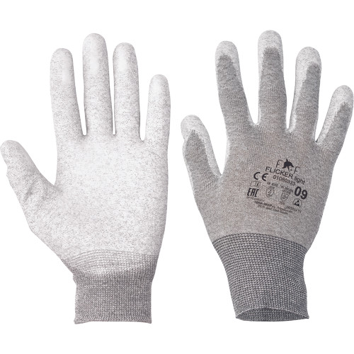 • kötött, varratmentes, antisztatikus, PES kesztyű integrált szénszállal • tenyéren poliuretán mártással • rugalmas mandzsettával