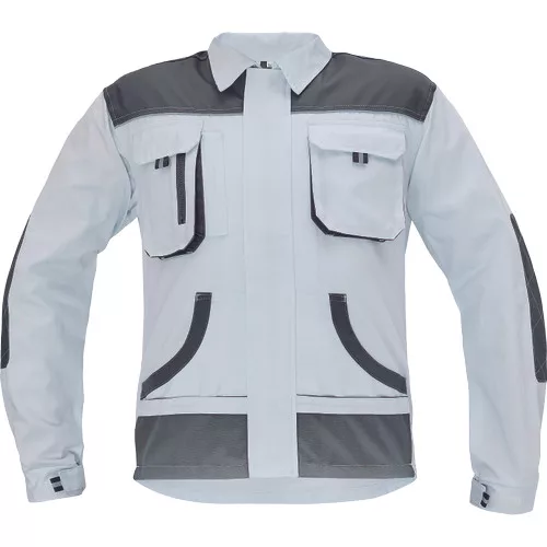 • férfi munkakabát • cipzáras kivitelben, tépőzáras hajtókával • 2 tépőzáras mellzseb • 2 multifunkcionális oldalzseb • OXFORD poliészter erősítés könyökrészeken és a vállakon • 100% pamut, 235g/m2