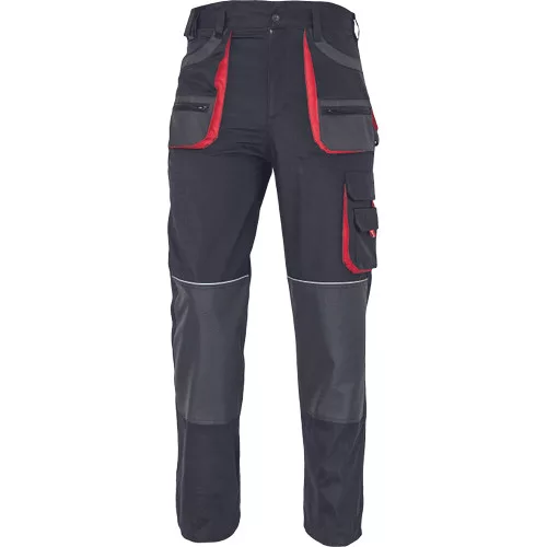 • férfi munkanadrág • 6 multifunkciós zseb • OXFORD poliészter erősítésekkel az igénybevett részeken • térdvédő behelyezésére alkalmas, megerősített térdrész • leengedhető szárak • anyaga 100% pamut, 235g/m2