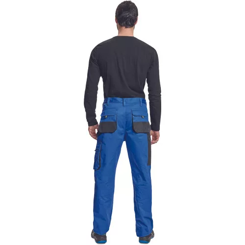 • férfi munkanadrág • 6 multifunkciós zseb • OXFORD poliészter erősítésekkel az igénybevett részeken • térdvédő behelyezésére alkalmas, megerősített térdrész • leengedhető szárak • anyaga 100% pamut, 235g/m2