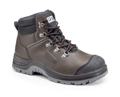 * barna vízlepergető marhabőr felsőrész* acél lábujjvédő és acél átszúrás elleni talplemez* lélegző és nedvszívó hálós belső bélés* szivacsos szártető és nyelv, illetve fém fűzővezetők* antisztatikus, SRC csúszásbiztosságú, emelt kopásállósággal rendelkező, kétrétegű PU talp, energiaelnyelő sarok* plusz orrborítás az orr-rész megerősítéséhez* alkalmazási területek: belépő szintű építkezési lábbeli, külső, nedves körülmények, építkezés, kőművesmunkák, ipar stb.
