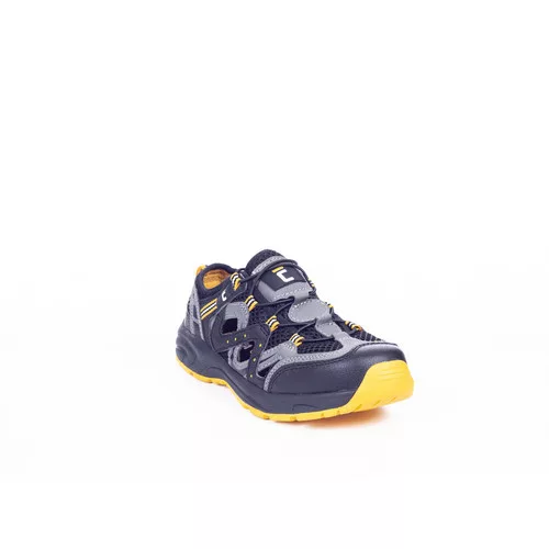 » biztonsági szandál kompozit lábujjvédővel » antisztatikus, csúszásbiztos phylon/gumi talp » energiaelnyelő sarok » bőr és PES háló felsőrész » sárga részletek a fokozott láthatóságért