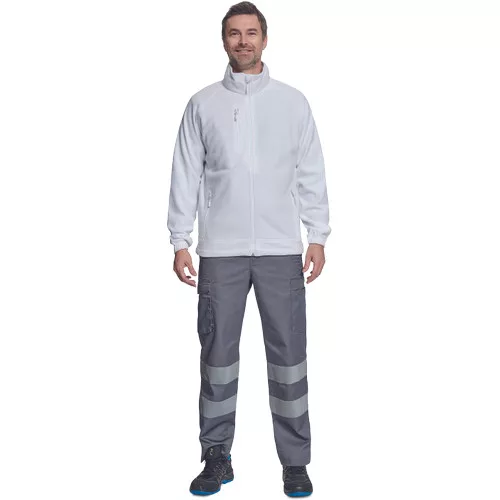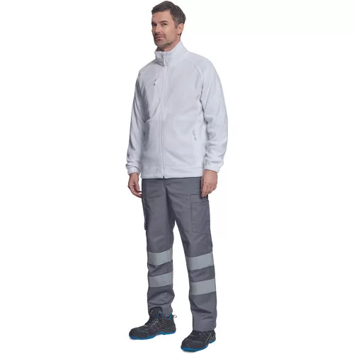 • férfi munkanadrág 7 cm széles fényvisszavető csíkokkal • 2 oldalsó zseb + 1 érmezseb • 2 oldalzseb • 2 hátsó zseb • rugalmas oldalsó betétek a derékon • meghosszabbítható szárhossz • 65% PES/35% pamut, 195 g/m2