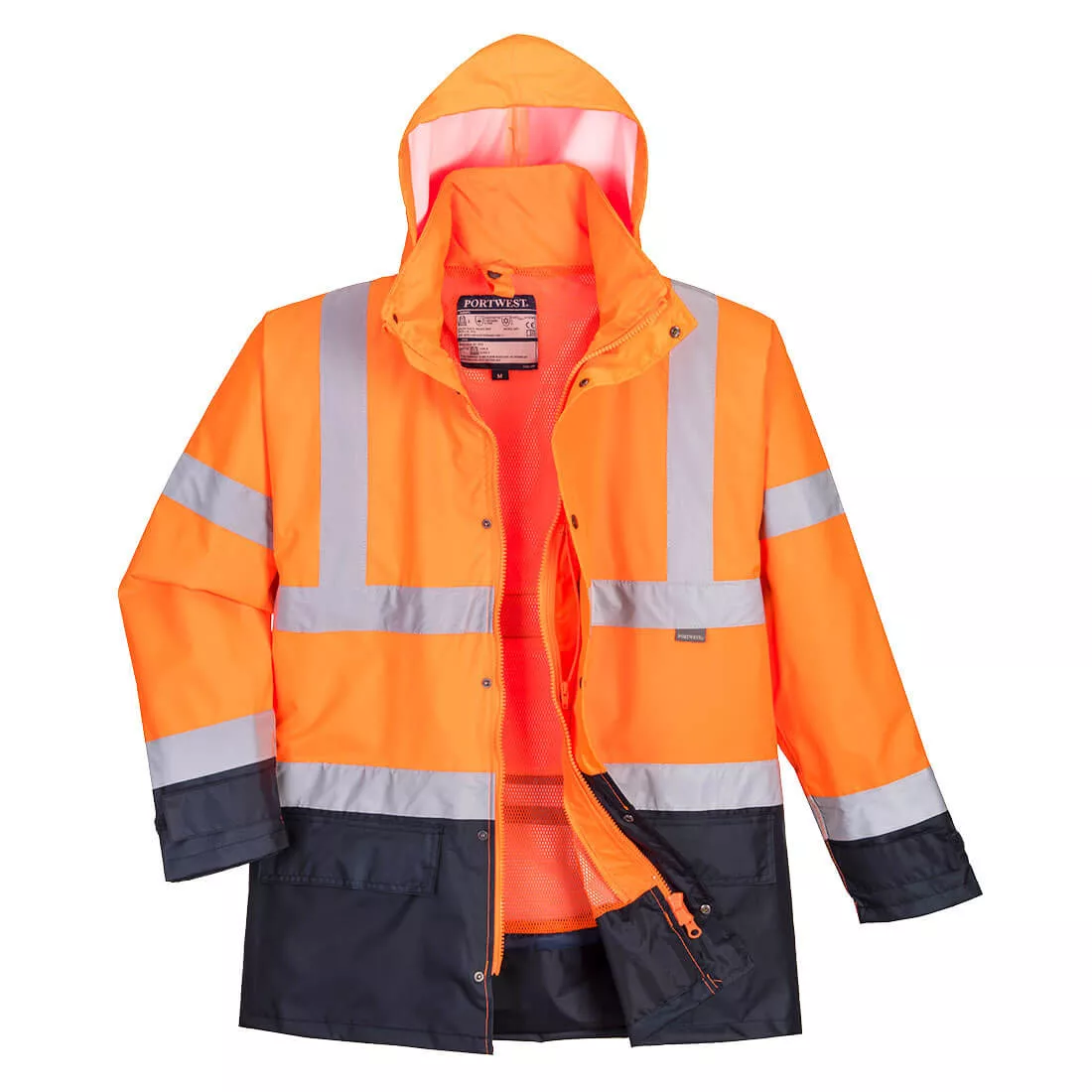 An innovative style adaptable for multiple uses. Outer jacket contains two useful large patch pockets with hook and loop closures and a concealed hood, whilst the inner jacket has detachable fleece sleeves, 2 roomy side pockets and has full EN ISO 20471 Class 3 certification.