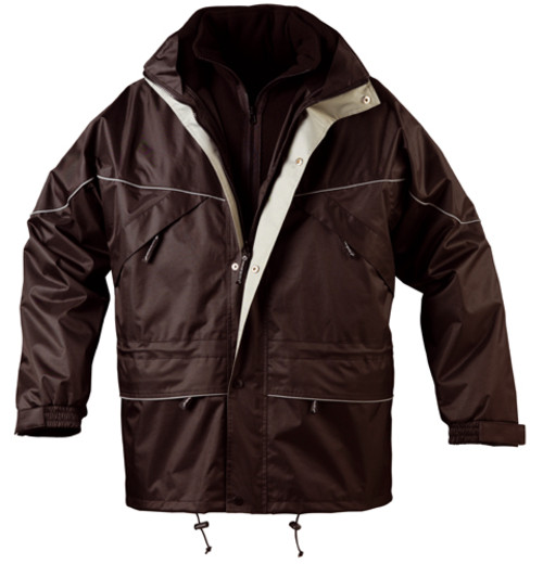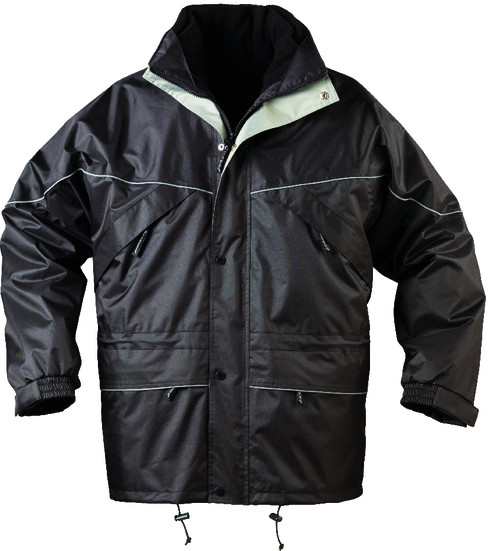 * PVC-vel vízhatlanított poliészter külső, selymes taft belső * 3 az 1-ben modell: kicipzározható, 280 g/m?, zsebes, polár belső pulóver * erős cipzár patentos fedővel, rejtett kapucni, polárbetétes gallér * négy cipzáras külső-, egy belső zseb