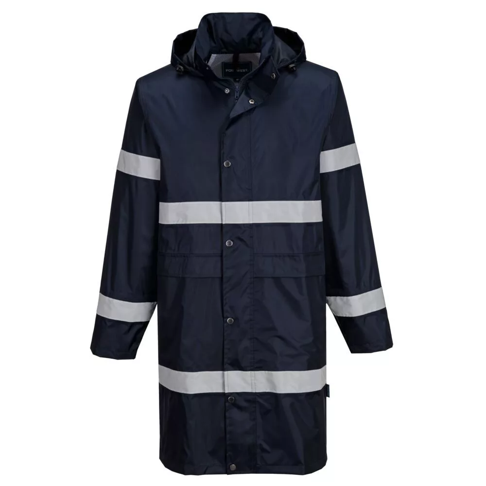 Lightweight and practical the Iona Rain Jacket 100cm offers waterproof protection and enhanced visibility. Features include pack-away hood, large storage pockets and vented back yoke and eyelets for ventilation.