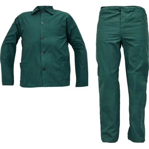• gombbal záródó dzseki 2 oldalzsebbel és 1 mellzsebbel • húzózsinóros derékkal készült nadrág 2 oldalzsebbel és 1 hátsó zsebbel • 100 % pamut, 200 g/m²