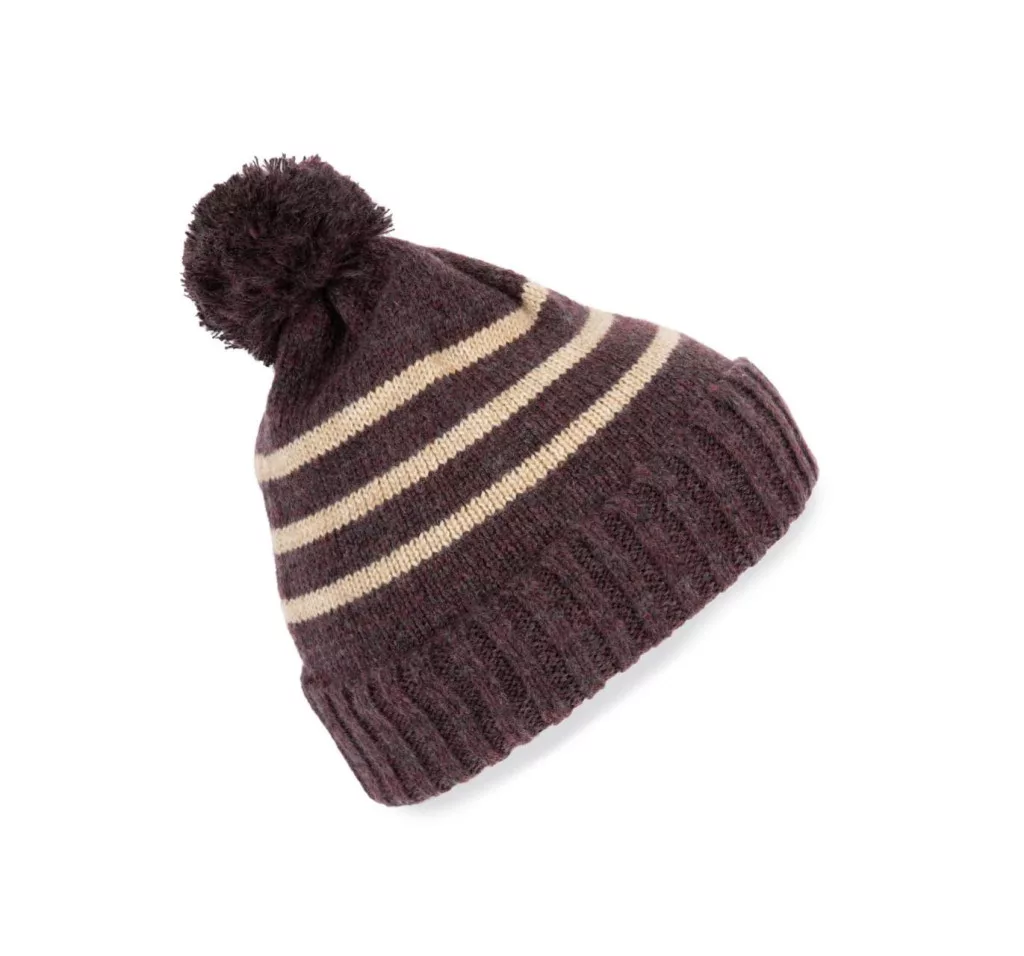 Kötött csíkos beanie pomponnal, újrahasznosított poliészterből és akrilból