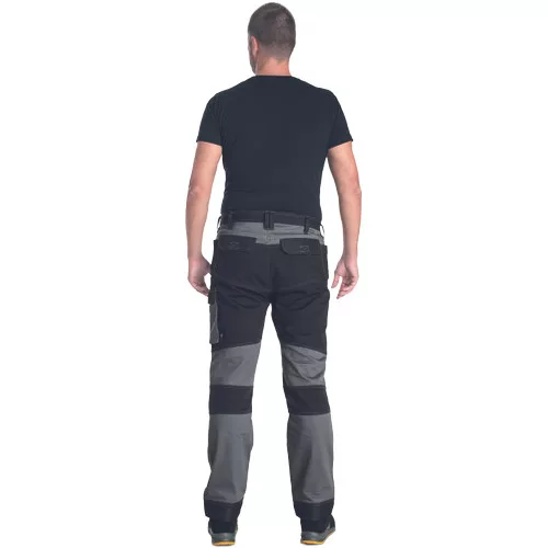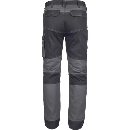 • minőségi férfi munkanadrág elasztikus anyagból • 2 oldalzseb • 2 hátsó zseb tépőzárral • 2 combzseb • megerősített térdzsebek térdvédő betét behelyezési lehetőséggel • hosszabbítható nadrágszárak akár 5 cm-rel • díszvarrás