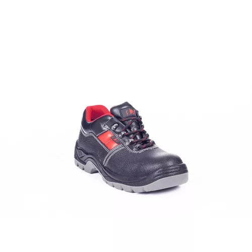 • biztonsági félcipő acél lábujjvédővel és átszúrás ellen védő acél köztalppal • olajálló PU/PU talp • hasított bőr felsőrész • fényvisszavető elemek • tömeg: 630 g