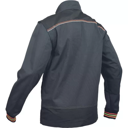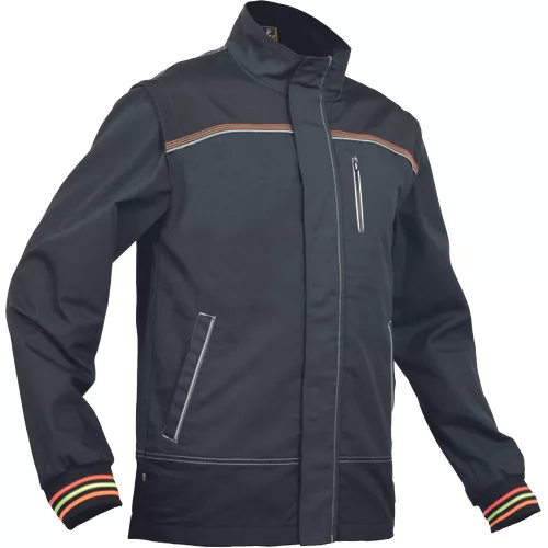 • férfi munkakabát állógallérral, modern mintázattal • 2 nagy oldalzseb, 1 multifunkcionális mellzseb • D-gyűrű, megerősítő rátét a vállakon Oxford 600D anyagból