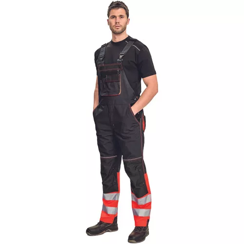 • kiváló minőségű férfi mellesnadrág HI-VIS anyaggal kombinálva a szárak alján, 2 fényvisszavető csíkkal • rugalmas pántok és derékrész • 6 funkcionális zseb, 600D Oxford megerősített térdrész a térdvédő behelyezéséhez • a szárak hossza 5 cm-rel meghosszabbítható • dekoratív varrás és kontrasztos részletek HI-VIS színben