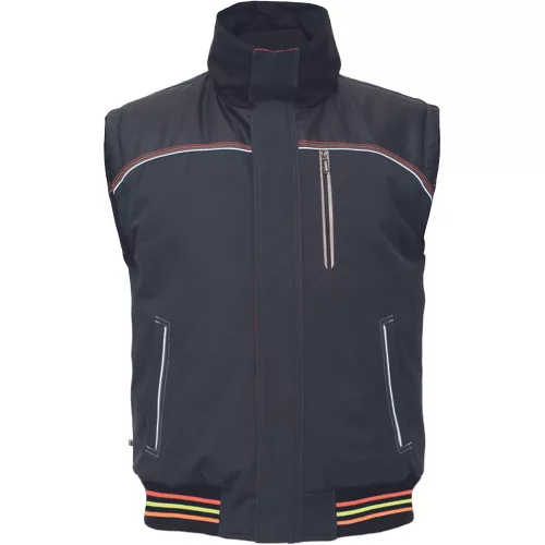 • kifordítható bélelt férfi mellény rugalmas derékkal • egyik oldalán jólláthatósági színekben, nyomtatott fényvisszavető csíkokkal • a mellény mindkét oldalán mell- és oldal zsebekkel • a vállrészen Oxford 600D anyagból készült megerősítő rátétekkel • fényvisszavető kiegészítőkkel díszített kivitel