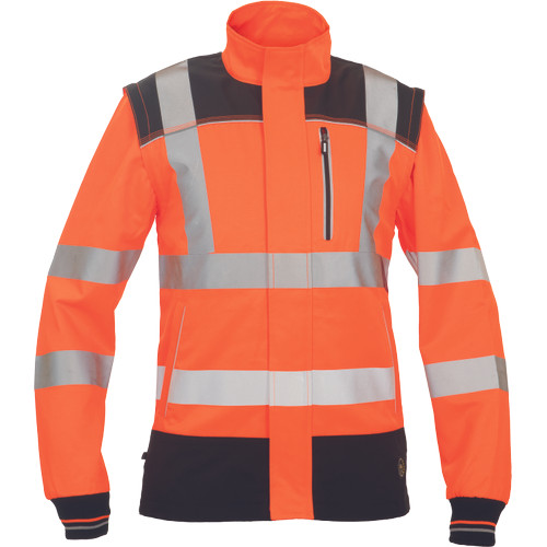 • jólláthatósági férfi dzseki levehető ujjakkal, cipzárral záródó kialakításban tépőzáras hajtókával • praktikus kialakítás 2 oldalzsebbel, elöl 1 zsebbel, a vállakon Oxford 600D anyagból készült megerősítő rátétekkel • a derékrészen, a vállakon és az ujjakon 5cm-es nyomtatott fényvisszavető csíkokkal van ellátva • kontrasztos színű tűzések