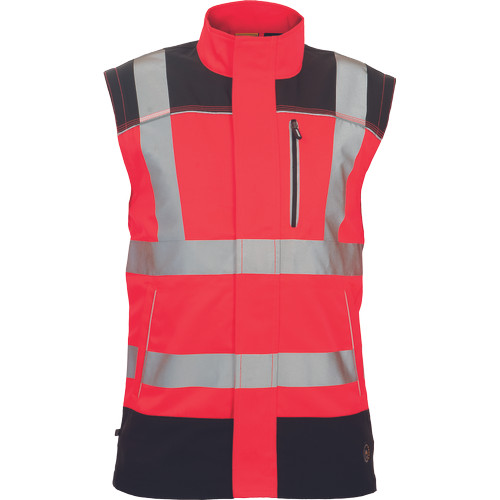 • jólláthatósági férfi dzseki levehető ujjakkal, cipzárral záródó kialakításban tépőzáras hajtókával • praktikus kialakítás 2 oldalzsebbel, elöl 1 zsebbel, a vállakon Oxford 600D anyagból készült megerősítő rátétekkel • a derékrészen, a vállakon és az ujjakon 5cm-es nyomtatott fényvisszavető csíkokkal van ellátva • kontrasztos színű tűzések