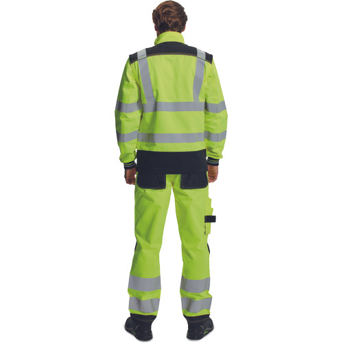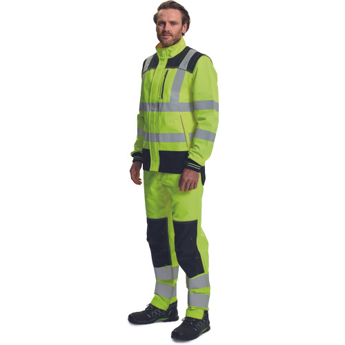 • jólláthatósági férfi dzseki levehető ujjakkal, cipzárral záródó kialakításban tépőzáras hajtókával • praktikus kialakítás 2 oldalzsebbel, elöl 1 zsebbel, a vállakon Oxford 600D anyagból készült megerősítő rátétekkel • a derékrészen, a vállakon és az ujjakon 5cm-es nyomtatott fényvisszavető csíkokkal van ellátva • kontrasztos színű tűzések