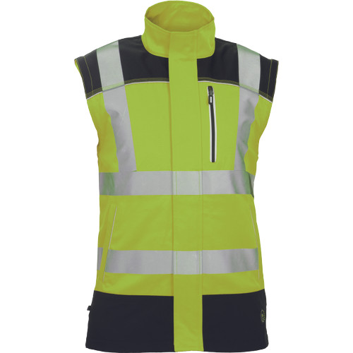 • jólláthatósági férfi dzseki levehető ujjakkal, cipzárral záródó kialakításban tépőzáras hajtókával • praktikus kialakítás 2 oldalzsebbel, elöl 1 zsebbel, a vállakon Oxford 600D anyagból készült megerősítő rátétekkel • a derékrészen, a vállakon és az ujjakon 5cm-es nyomtatott fényvisszavető csíkokkal van ellátva • kontrasztos színű tűzések