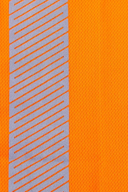Rövid ujjú láthatósági pólókSzegmentált fényvisszaverő csíkok a fokozott kényelem érdekében150g/m2Lélegző tulajdonságú 100% poliészter háló a hónaljrészen a jobb szellőzés érdekében50% pamut / 50% poliészter fluoreszkáló anyag a nedvesség jobb felszívása és a puha tapintás érdekében50% poliészter / 50% pamut kontrasztfelület.V-nyak