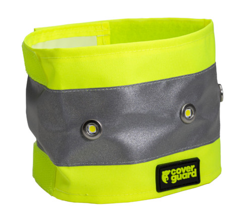 * 180 g/m2 vastag poliuretánnal mártott 100% Oxford 300D poliészter jólláthatósági alapanyag* 5 cm széles fényvisszaverő csík* tépőzárral állítható és rögzíthető, cserélhető elemmel működik, egy méretben* 5 LED égővel, 3 világítási mód