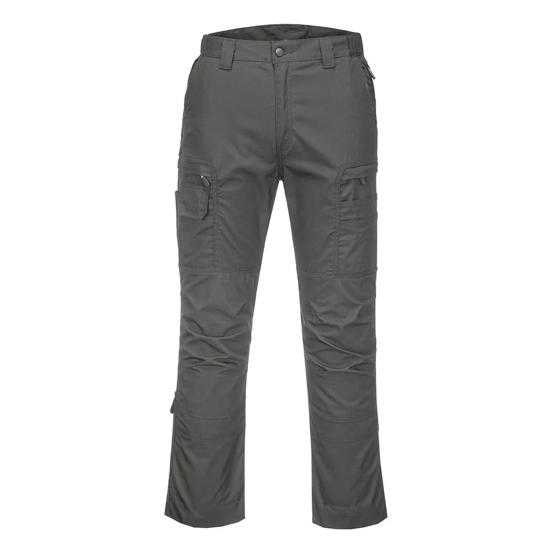 Contemporary work trouser made from highly durable ripstop fabric that stretches as you move. Subtle articulation on the knees allow for increased freedom of movement and a high rise back waistband ensures protection in all working positions. Packed with functionality including pre-bent knees, a crotch gusset, two tier knee pad pockets and an adjustable leg length for added convenience. Multi-functional thigh pockets provide secure storage of phones, pens and tools.