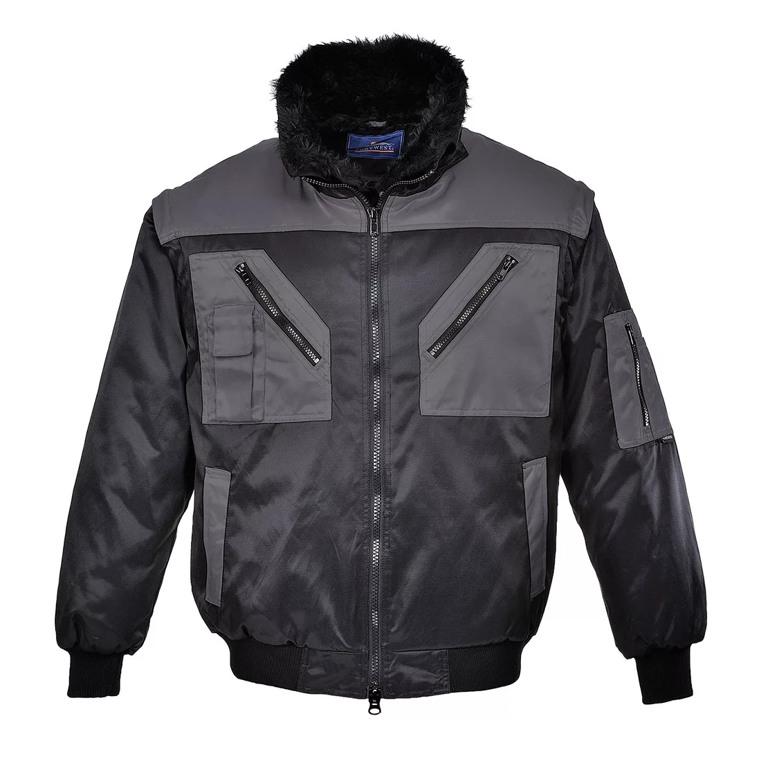 This contemporary, two tone jacket is stylish and practical. Versatile features include; zip out sleeves, multiple secure pockets, removable fur liner and collar. The shower proof outer fabric adds to the appeal of this all weather style.