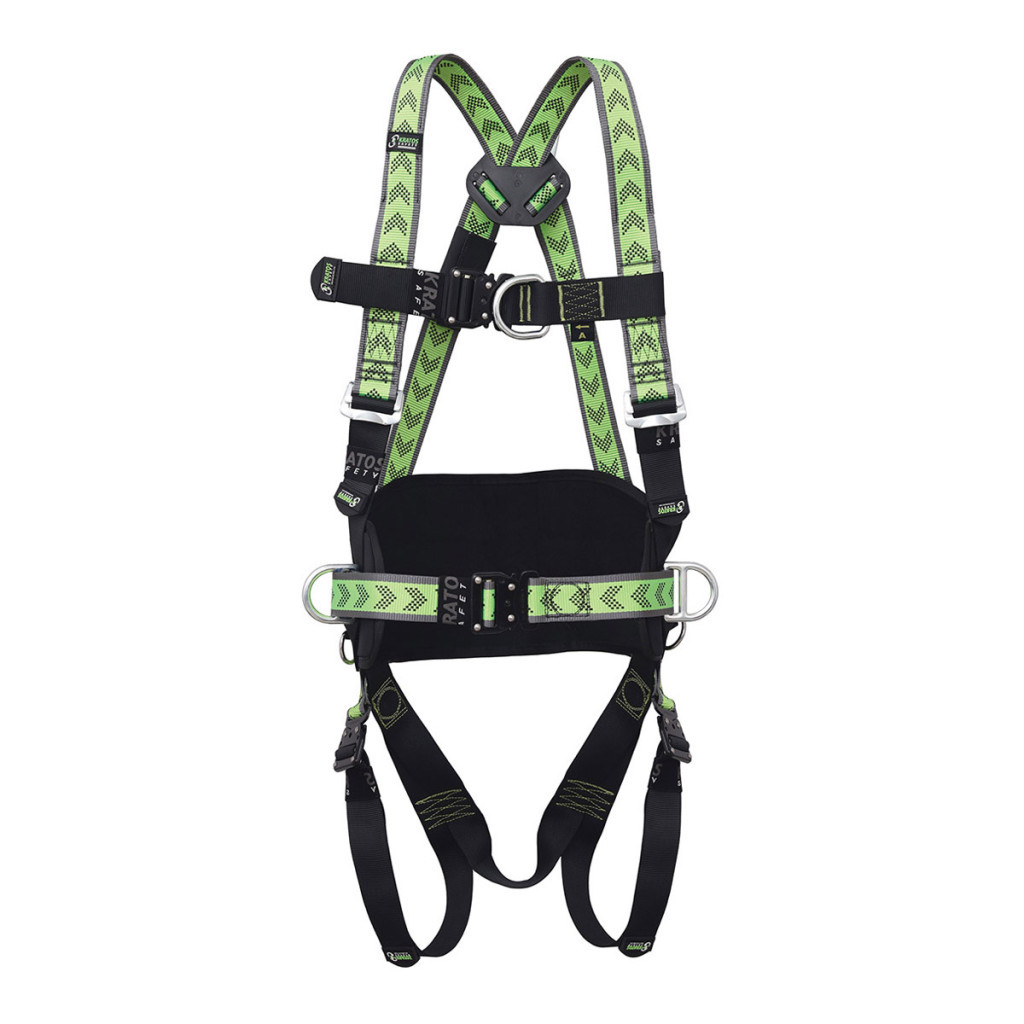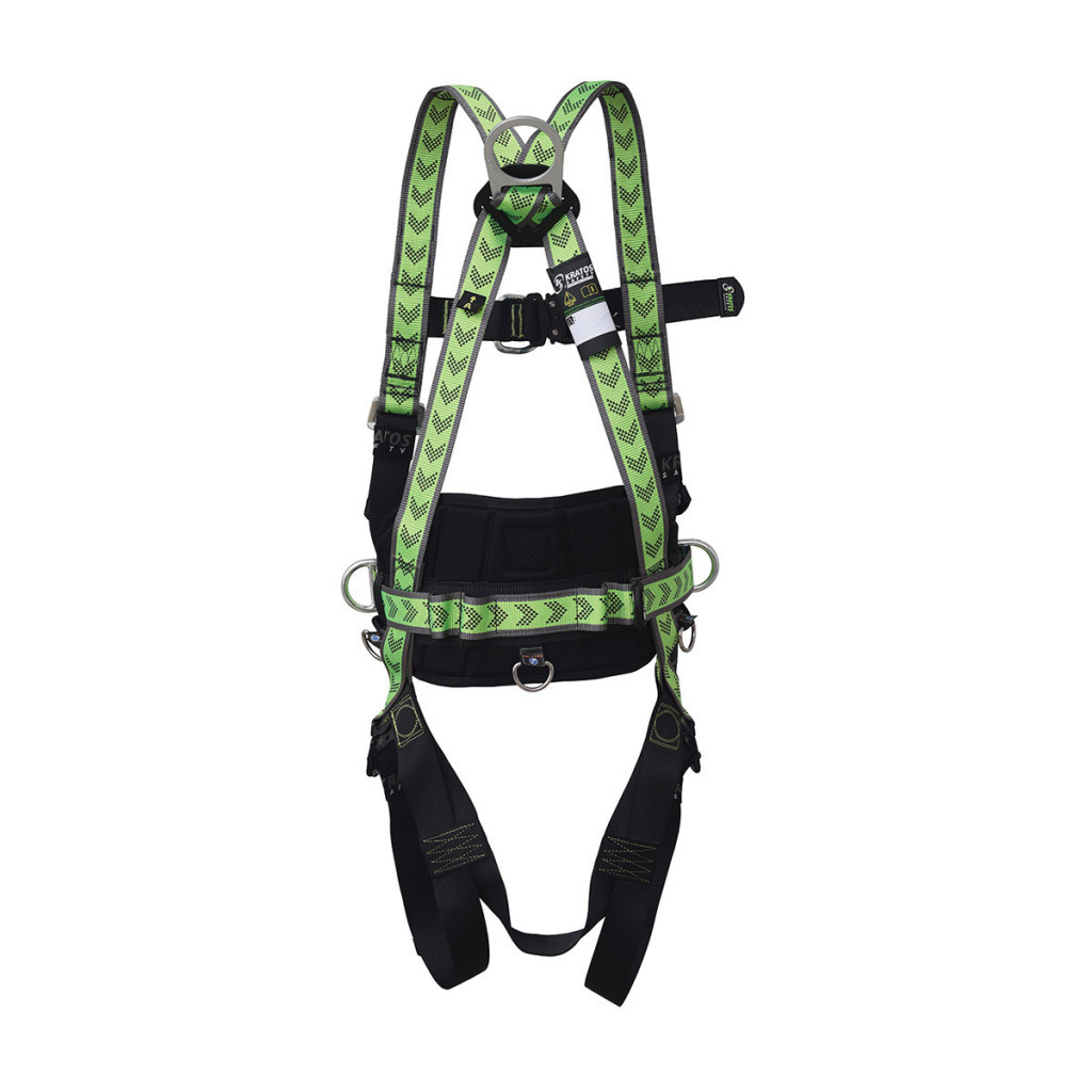 Jellemzők: - Rögzítőelemek: 1 db mellkasi D-gyűrű és 1 db háti D-gyűrű a leesés megállításához, valamint 2 db oldalsó D-gyűrű a munkahelyi pozicionáláshoz.