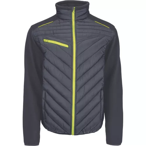 • dzseki steppelt anyag és kötött ujjak kombinációjával • jól láthatósági színkiemelés és fényvisszavető részletek • 2 oldalzseb • cipzáras mellzseb