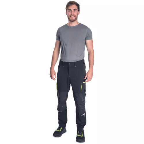 kényelmes férfi nadrág rugalmas anyagból • jól láthatósági és fényvisszavető elemekkel kiemelve • Oxford poliészter erősítés a térdrészen, térdvédő betétek behelyezésének lehetőségével • 2 elülső zseb • 2 hátsó zseb • 2 többfunkciós combzseb