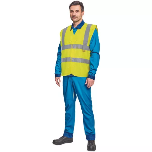 • jólláthatósági ESD mellény, két vízszintes retroreflektív szalaggal • tépőzáras zárás • alkalmas ESD védett területre