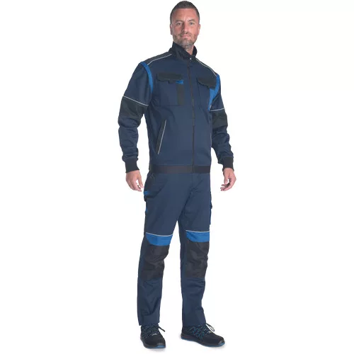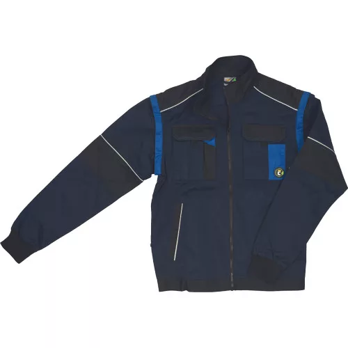 • férfi munkakabát cipzárral, takart patentes borítással • 2 oldalzseb • 2 tépőzáras mellzseb • megerősített vállrészek • levehető ujjak rugalmas mandzsettákkal • rugalmas derékpánt • fényvisszavető részletek