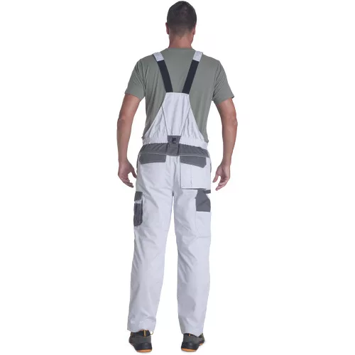 • férfi munkás mellesnadrág rugalmas derékpánttal • 2 oldalzseb • 1 combzseb • 1 mellzseb tépőzárral • 2 hátsó zseb tépőzárral