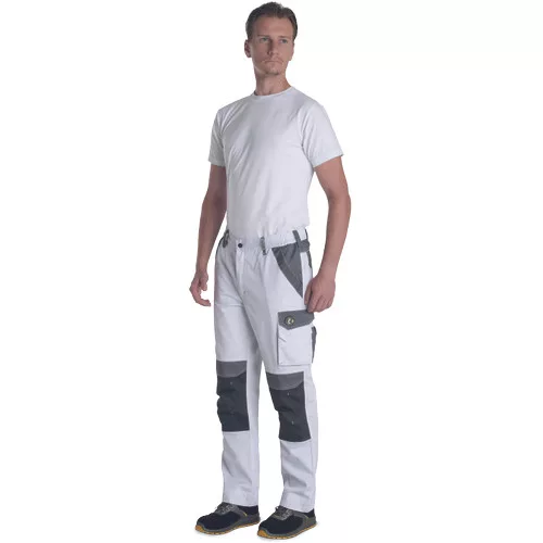 • férfi munkanadrág rugalmas derékpánttal • 2 oldalzseb • 1 bal combzseb • 2 hátsó zseb tépőzárral • térdrész erősítés opcionálisan behelyezhető térdpárnával • fényvisszavető részletek • állítható szárhossz