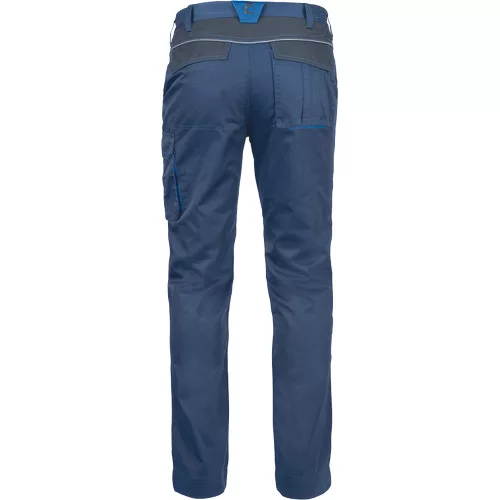 • férfi munkanadrág rugalmas derékpánttal • 2 oldalzseb • 1 bal combzseb • 2 hátsó zseb tépőzárral • térdrész erősítés opcionálisan behelyezhető térdpárnával • fényvisszavető részletek • állítható szárhossz