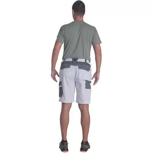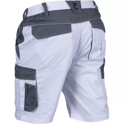 • férfi munkás rövidnadrág rugalmas derékpánttal • 2 oldalzseb • 2 combzseb • 2 hátsó zseb tépőzárral • fényvisszavető részletek