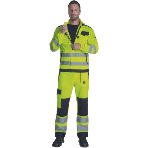 • Unisex HI-VIS munkakabát cipzárral, takarólappal ellátva • 2 oldalzseb • 2 mellzseb tépőzárral