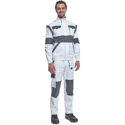 • férfi cipzáras munkakabát levehető ujjakkal • 2 oldalzseb, 2 mellzseb • megerősítés a váll- és könyökrészeken • rugalmas mandzsetta és derékpánt • anyag: 100% pamut, anyagvastagság: 260 g/m2