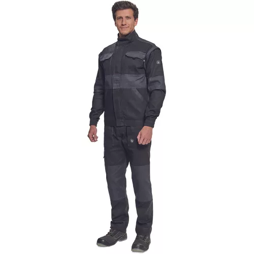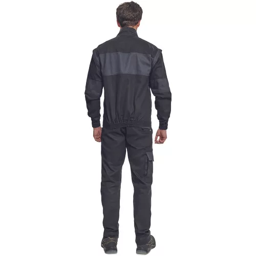 • férfi cipzáras munkakabát levehető ujjakkal • 2 oldalzseb, 2 mellzseb • megerősítés a váll- és könyökrészeken • rugalmas mandzsetta és derékpánt • anyag: 100% pamut, anyagvastagság: 260 g/m2
