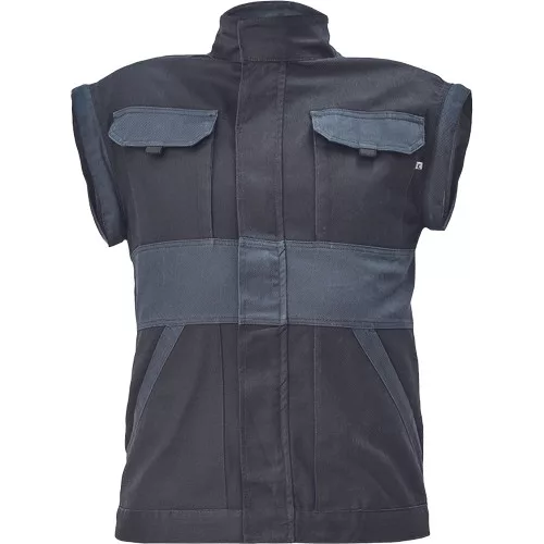 • férfi cipzáras munkakabát levehető ujjakkal • 2 oldalzseb, 2 mellzseb • megerősítés a váll- és könyökrészeken • rugalmas mandzsetta és derékpánt • anyag: 100% pamut, anyagvastagság: 260 g/m2