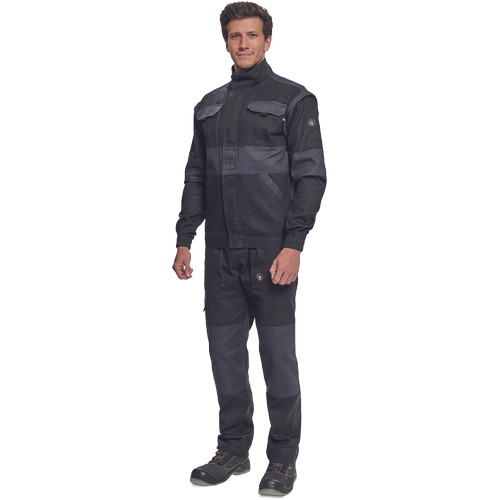 • férfi cipzáras munkakabát levehető ujjakkal • 2 oldalzseb, 2 mellzseb • megerősítés a váll- és könyökrészeken • rugalmas mandzsetta és derékpánt • anyag: 100% pamut, anyagvastagság: 260 g/m2