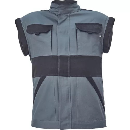 • férfi cipzáras munkakabát levehető ujjakkal • 2 oldalzseb, 2 mellzseb • megerősítés a váll- és könyökrészeken • rugalmas mandzsetta és derékpánt • anyag: 100% pamut, anyagvastagság: 260 g/m2