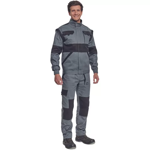 • férfi cipzáras munkakabát levehető ujjakkal • 2 oldalzseb, 2 mellzseb • megerősítés a váll- és könyökrészeken • rugalmas mandzsetta és derékpánt • anyag: 100% pamut, anyagvastagság: 260 g/m2