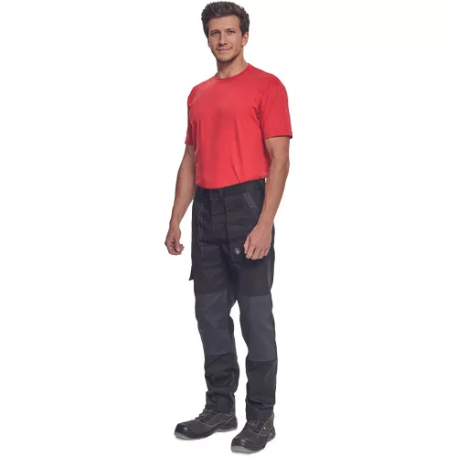 • férfi munkanadrág rugalmas derékkal • 2 első zseb, 1 oldalzseb, 2 hátsó zseb • megerősített térdrész • leengedhető szárak